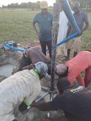 Tubewell The Shallow Groundwater Tube well is a simple and economical technology for exploiting shallow groundwater (up to 20 m), particularly suited to floodplain areas with sedimentary formations. It involves manually drilling or jetting a narrow hole fitted with a PVC pipe (50 or 63 mm), from which water is pumped using a small, low-power pump powered by fuel or solar energy. This solution provides small farmers with efficient access to water for irrigation during the dry season, covering up to 1 ha, and also meets agricultural and watering needs. Easy to implement, inexpensive, and compatible with solar pumping, the technology increases water autonomy, reduces dependence on fossil fuels, and supports sustainable and resilient agriculture, provided that local hydrogeological conditions are well understood.