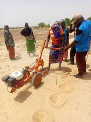 Zainer Zainer is a mechanized land preparation solution designed to facilitate the adoption of Zai farming in dry and arid areas. Powered by a small 5 hp petrol engine, it enables farmers to rapidly drill Zai planting holes that harvest and retain rainwater directly in the soil, improving moisture conservation and crop resilience. By reducing labor requirements from 300 hours to about 40 hours per hectare, Zainer significantly lowers drudgery and operational costs. The technology is suitable for rain-fed sorghum, millet, and maize systems and is best deployed through cooperatives or service providers, offering a cost-effective and scalable solution for climate-resilient agriculture.